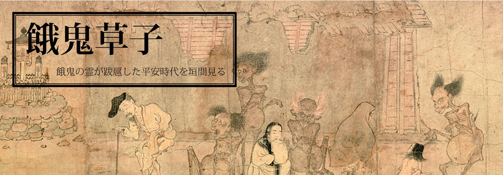 餓鬼は生前の悪行の報いとして、永遠に飢えと渇きに苦しむ死者の霊です。餓鬼たちは、ある時はおどろおどろしく、ある時はユーモラスに生き生きと人間生活の場に遍在していますが、人間たちにはその姿は見えていません。平安時代に人々がどのように暮らしていたかを知る興味深い資料でもあります。