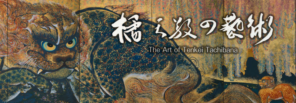 橘天敬は差し渡し10メートル以上ある大きな屏風絵を多く描いています。下絵を一切描かずに表現した、生命力あふれる大胆な屏風絵の数々は、英国の大英博物館やアメリカのスミソニアン博物館などに、今も展示されています。